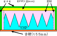こちらの内部には、図1のように,VHPタイプの電波吸収体があり,上部や側面にEPE(発泡ポリエチレン),クッション材としてEPP(発泡ポリプロピレン),補強材としてEPS(発泡ポリスチレン)のように電波を透過しやすい材料を用いています。