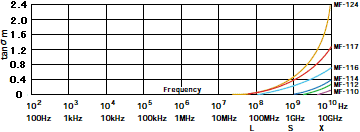 | 10GHzにおける減衰 | dB/cm : 8,12,16,24,31,33,39,49,69,75 |