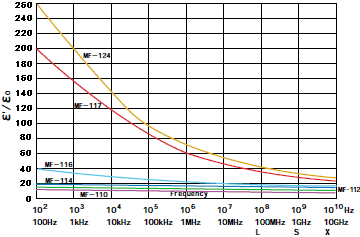 | 5 | 表中の値は公称値であり、ご注文の際の仕様基準値となるものではありません。もし仕様書が必要の場合は、当社の担当営業部にお問い合わせ下さい。一般に、受け入れ検査や出荷検査などで誘電特性や磁性特性を品質管理の目的で使用することはお勧めできません。これらの特性の計測は極めて複雑で時間がかかります。単に密度を調べるだけで十分です。 |