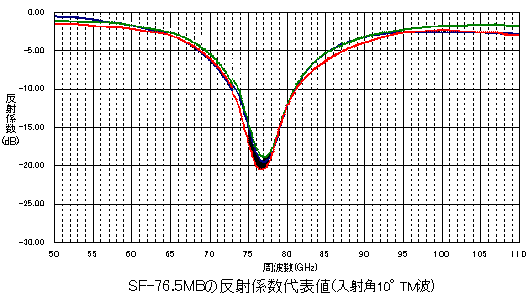 特に自動車の衝突防止レーダーの周波数(76.5GHz)を対象として開発されました。76.5GHzにおいて10dB以上の反射係数を有し、シリコーン樹脂を基材とします。そのため、耐候性,熱衝撃性などの物性が優れており,-54 ℃から+160 ℃の温度に耐えるなど,自動車特有の厳しい屋外環境条件下での使用に対応しています。